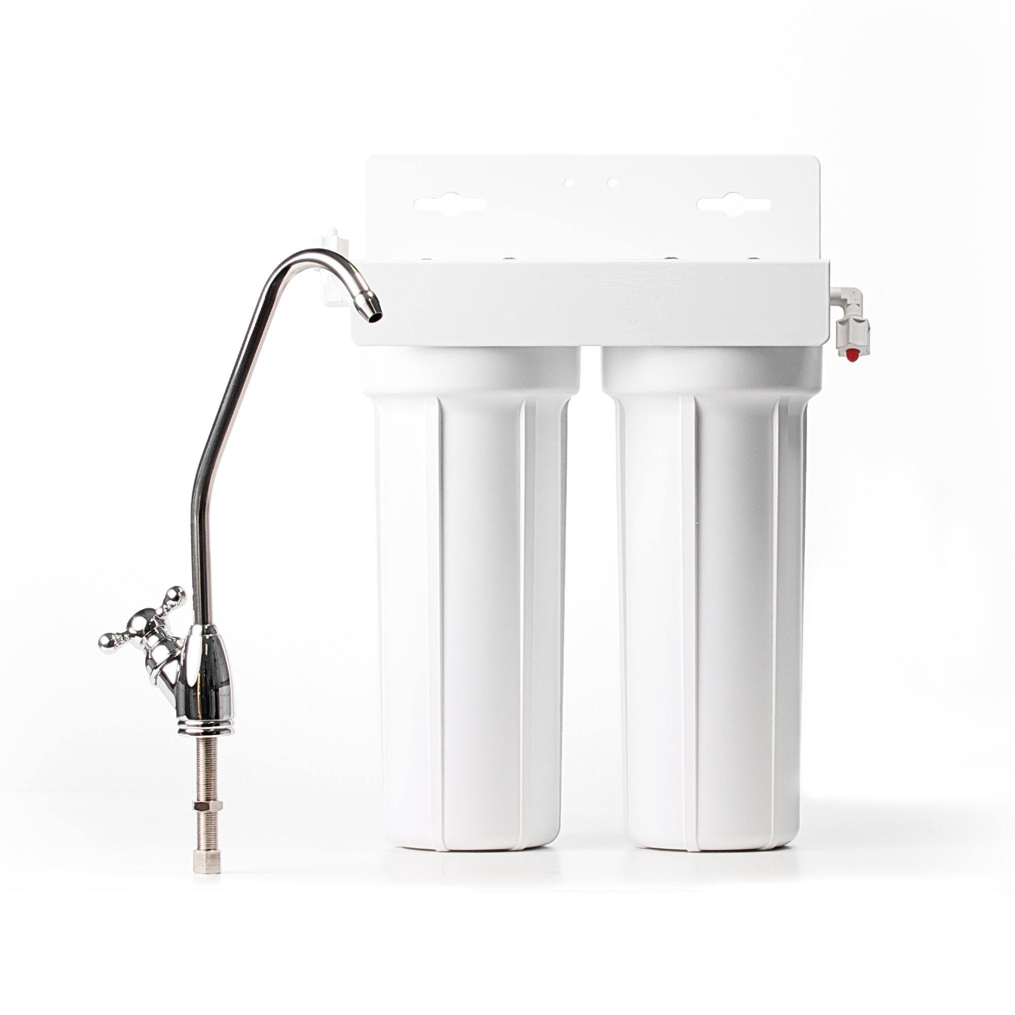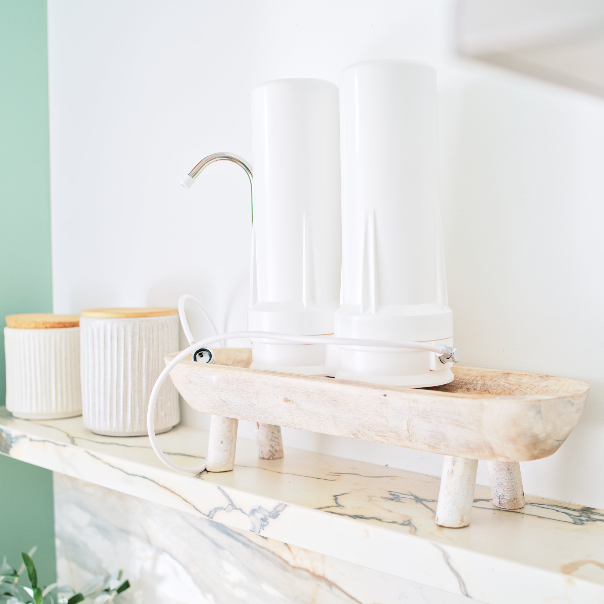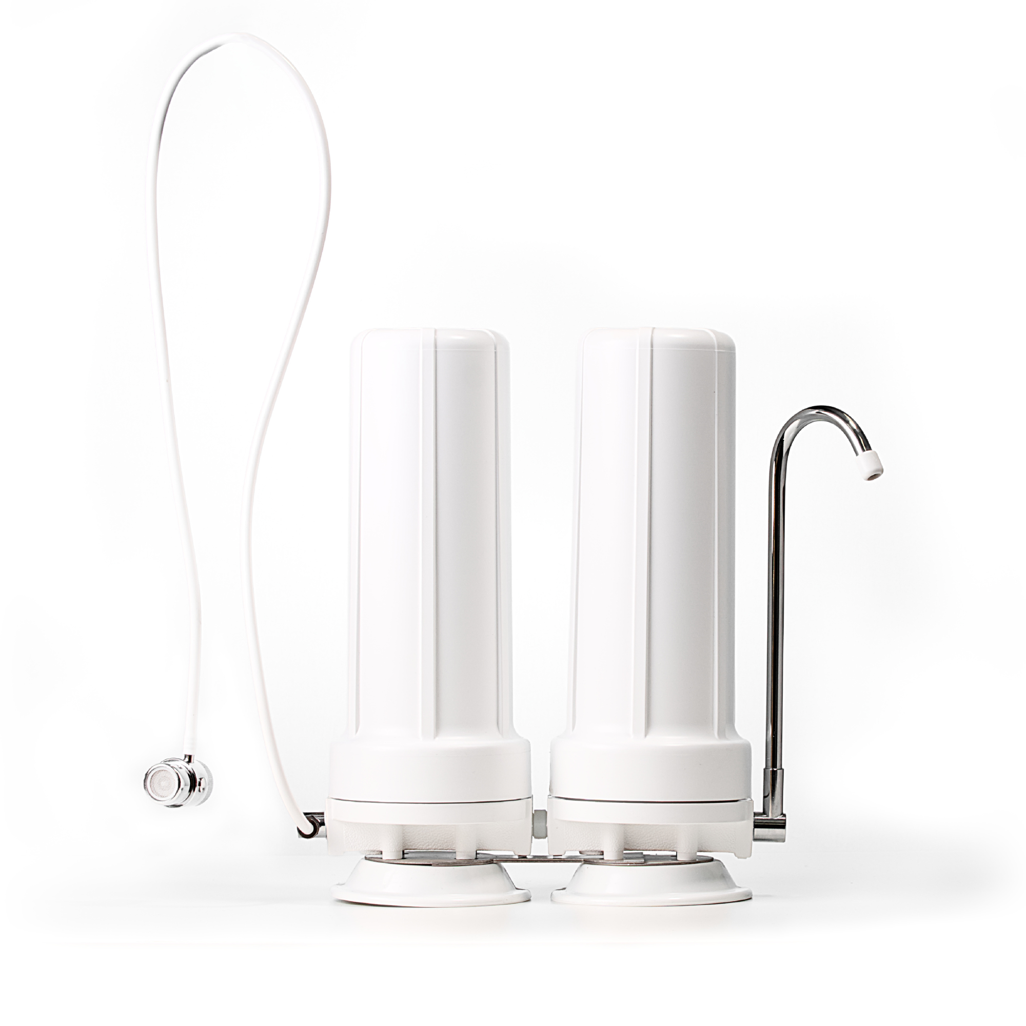The 2-Stage Countertop Water Filtration System offers enhanced filtration in a compact, versatile design; perfect for both countertop and under-sink use. Featuring a 1 Micron Sediment Filter and a 5 Micron Carbon Block Filter, this unit effectively reduces sediment, chlorine, and impurities that affect water clarity, taste, and odour.